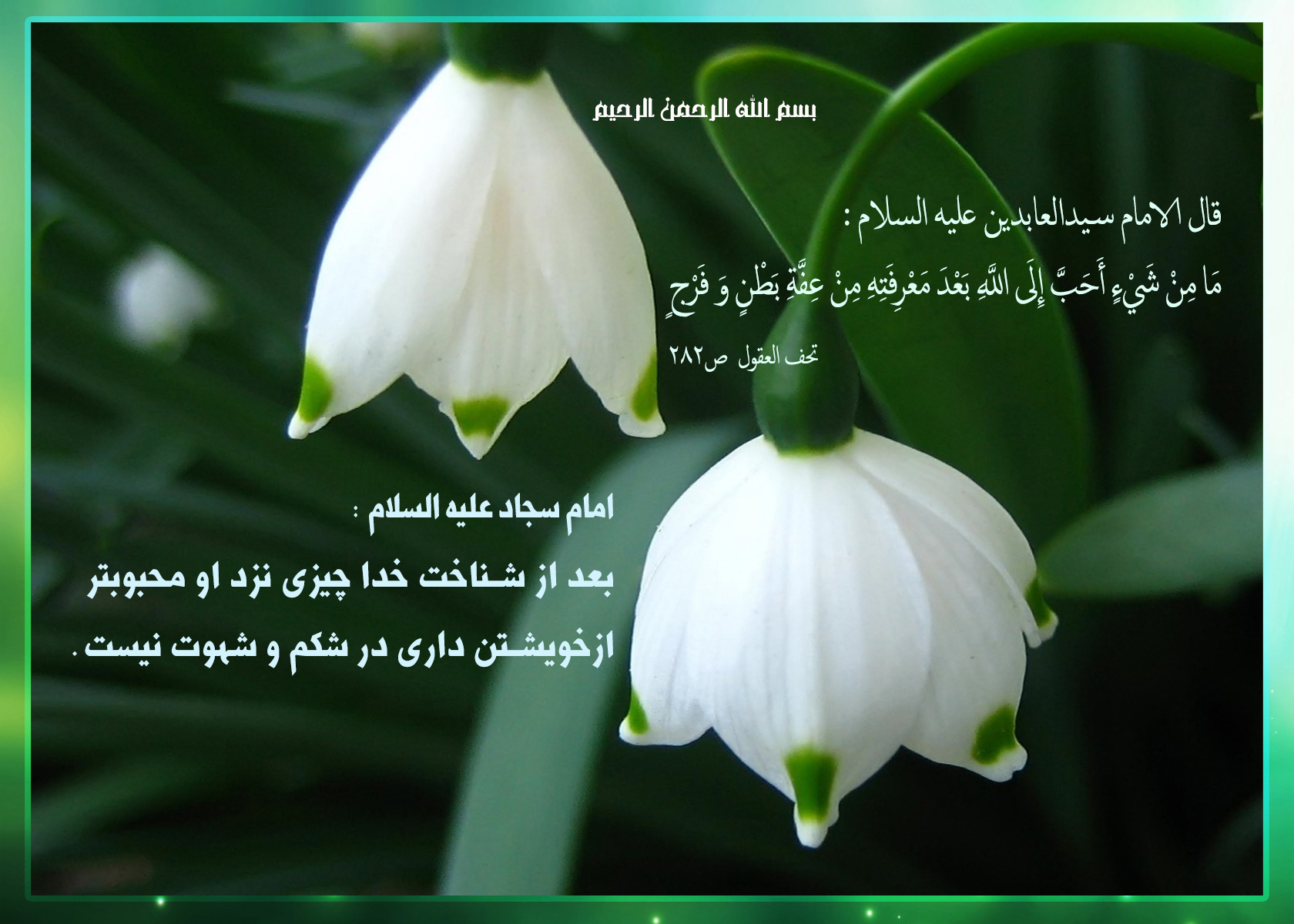 بعداز معرفت خدا چیزی نزد خداوند محبوبتر از خویشتنداری در شکم و شهوت نیست.
