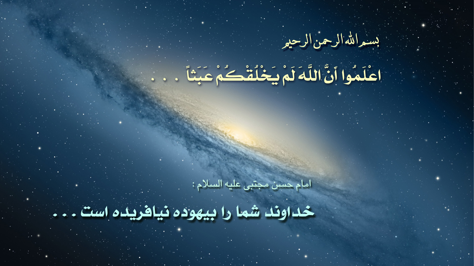 بدانید خداوند شما را بیهوده نیافریده و شما را رها نکرده اجلهای شما را معین فرموده و روزی شما را در بین شما تقسیم نموده تا هرصاحب خردی جایگاه خویش را بشناسد و بداند آنچه برای هرکس مقدر شده به او خواهد رسید و آنچه از کسی گردانده شده به او نخواهد رسید . خداوند نیازهای شما را کفایت کرده و شما را برای اطاعتش فراغت بخشیده ، شما رابه شکرگزاری ترغیب نموده و یادش را برشما واجب کرده است.