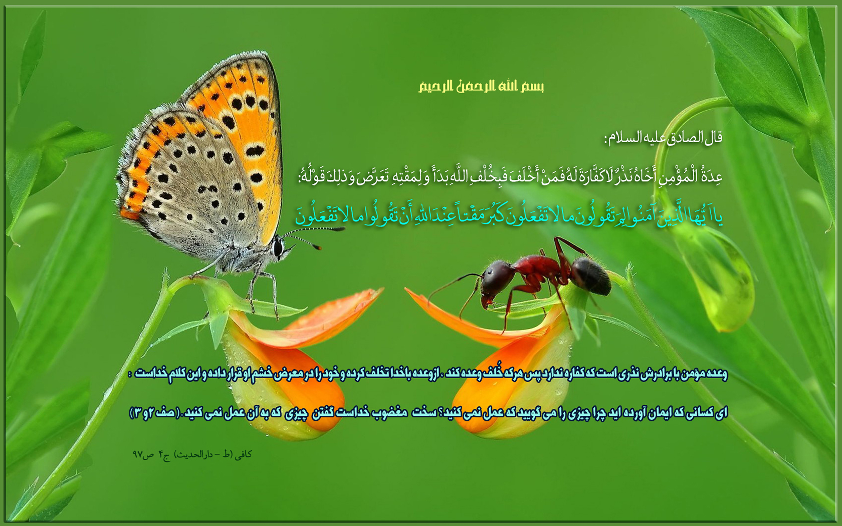 مَنْ کَانَ یُؤْمِنُ بِاللَّهِ وَ الْیَوْمِ الْآخِرِ فَلْیَفِ إِذَا وَعَدَ